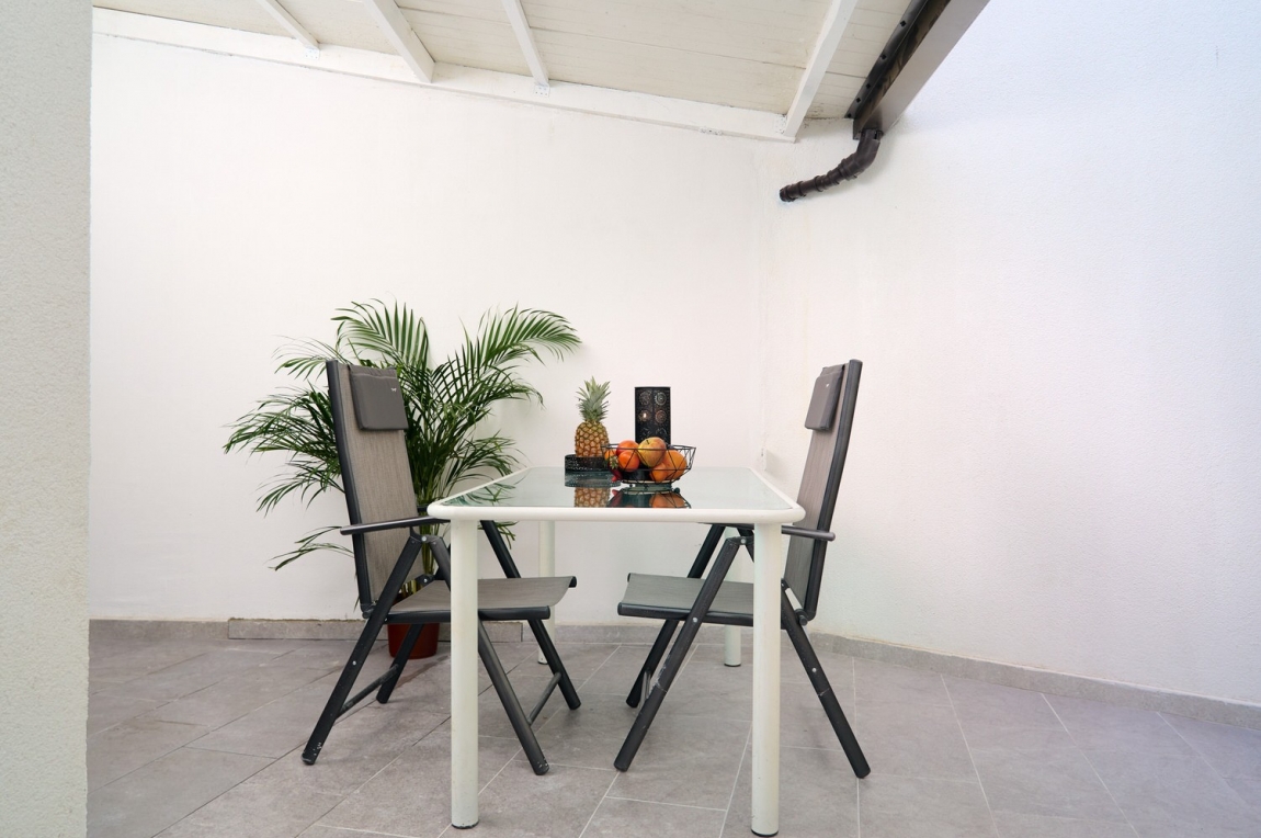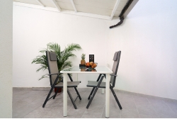 zasebna pokrita terasa z sedežno garnituro in mizo za 4 osebe